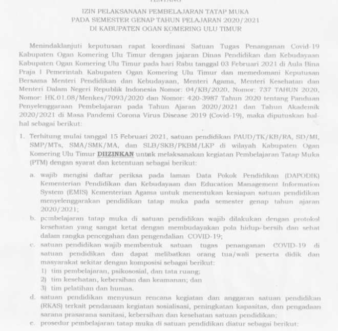 Dinas Pendidikan dan Kebudayaan Kabupaten OKU Timur melalui Bidang Pembinaan PAUD dan PNF menyelenggarakan Program Pembinaan Kelembagaan dan Manajemen PAUD dan PNF melalui kegiatan Sosialisasi Akreditasi Satuan PAUD dan PNF Tahun 2021. Peserta Pembinaan dan Sosialisasi ini berjumlah 50 Peserta yang terdiri dari : 4 …